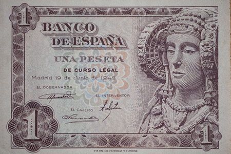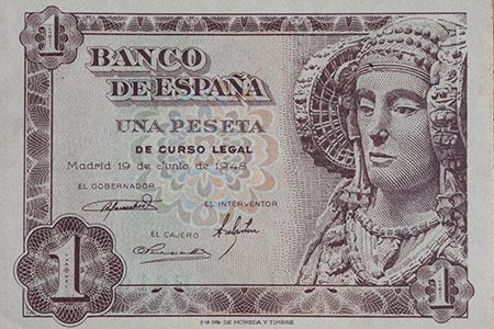 trasero y delantero. Una serie a un billete de una peseta